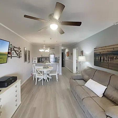 A fully furnished kitchen features a refrigerator, an oven, and kitchenware. Such kitchen facilities as coffee and tea makers are provided to offer guests a convenient experience. The bar River City Cafe is located just a short walk down to the accommodation. Myrtle Beach International airport can be accessed in 26 minutes by car.